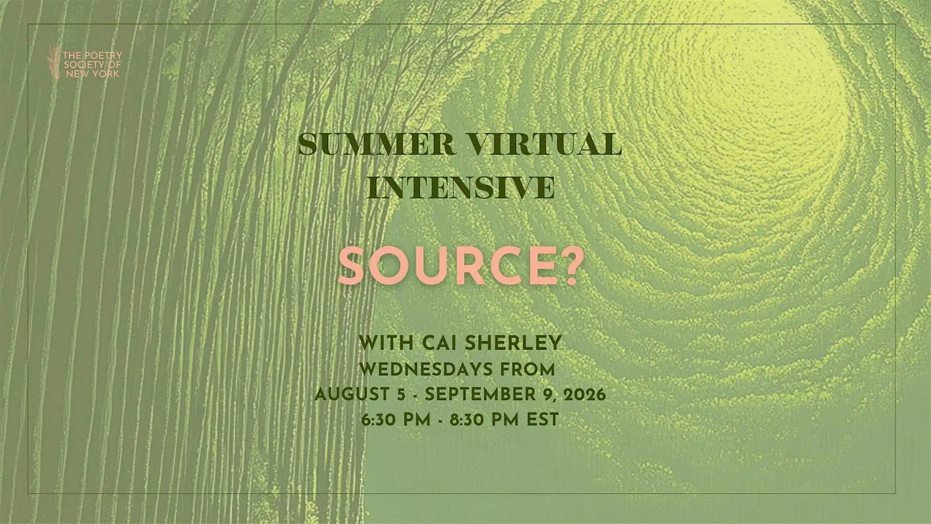 Source is a six-week course that will focus on poetry that comes from something — ekphrasis, re-tellings, erasure, golden shovels, centos. Each week will focus on a different approach to the referential and signified, and how assumed or given knowledge can birth pieces that offer new insight, meaning, and perspective.